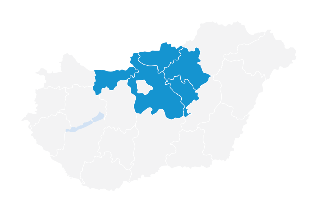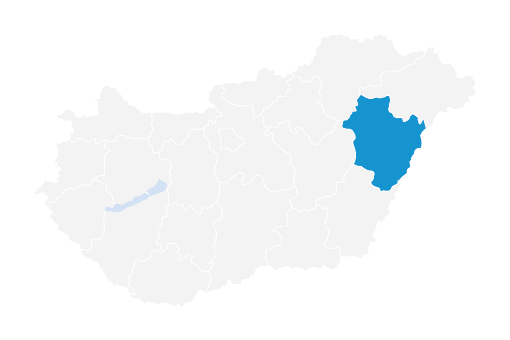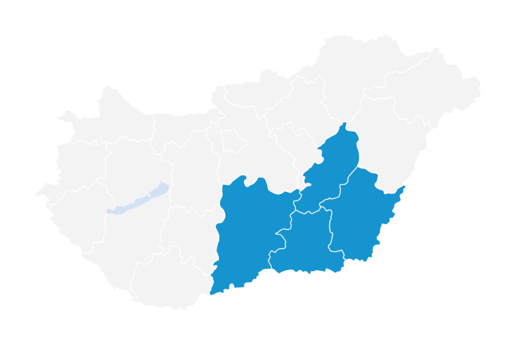 Bács-Kiskun, Békés, Csongrád vármegye és Jász-Nagykun-Szolnok Tiszántúlra eső területe